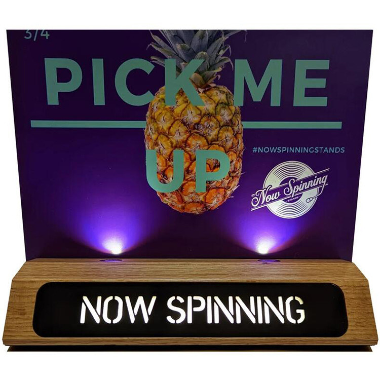 Deze van de LEIDENE tribune tekenvertoning wordt gemaakt van hout en pvc met LEIDENE verlichting. Er zijn twee LEIDENE lichten op de basis om grafisch pvc te benadrukken. Bovendien, u kunt de brieven vooraan veranderen, die ook backlit zijn. Grafisch pvc is verwisselbaar, zodat is de verpakkingsgrootte klein.